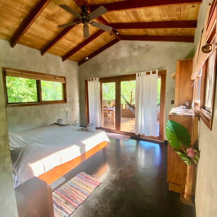 In the loft, you sleep in a king-size bed. The loft also has a ceiling fan and air conditioning for cooling.
